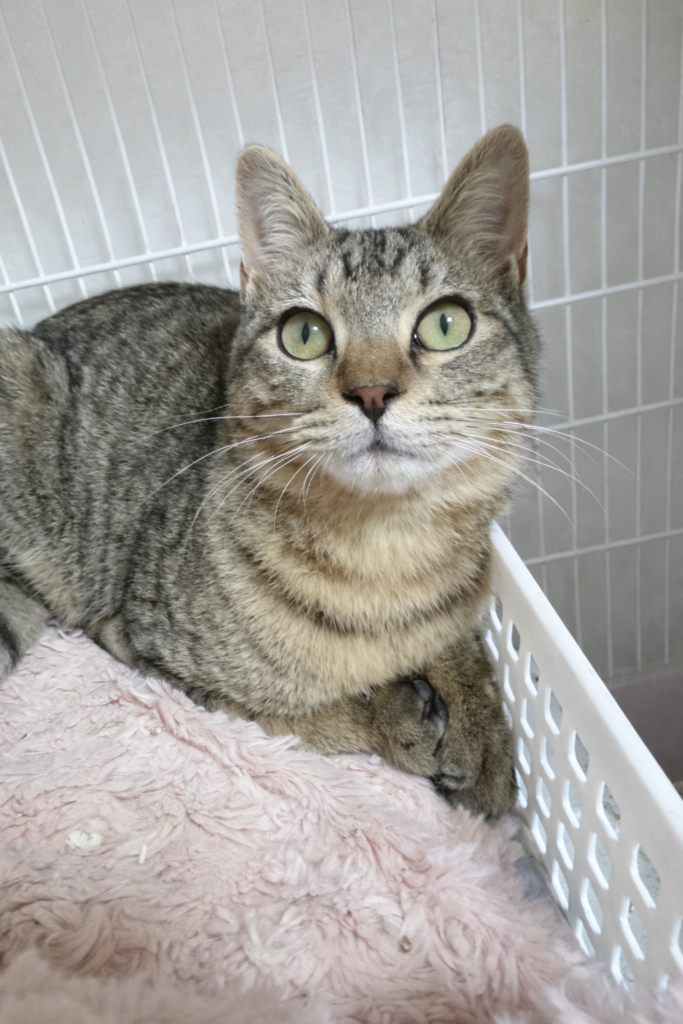 子猫のときに飼料の研究所に兄妹で入り込んで捕獲され、持ち込まれた子で最初はかなりのシャーシャーでした。